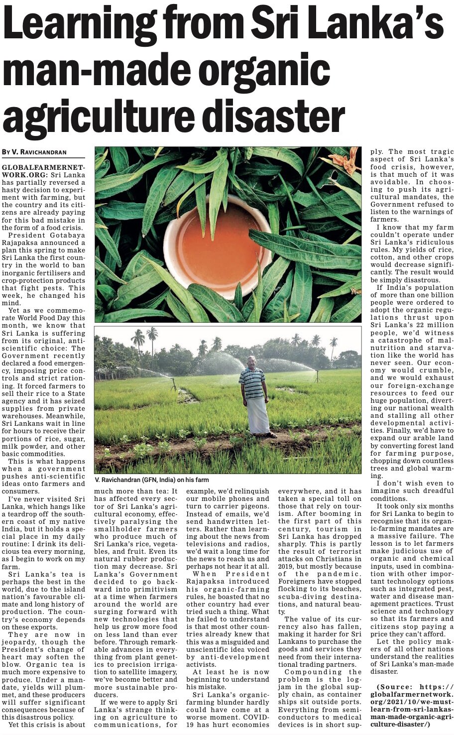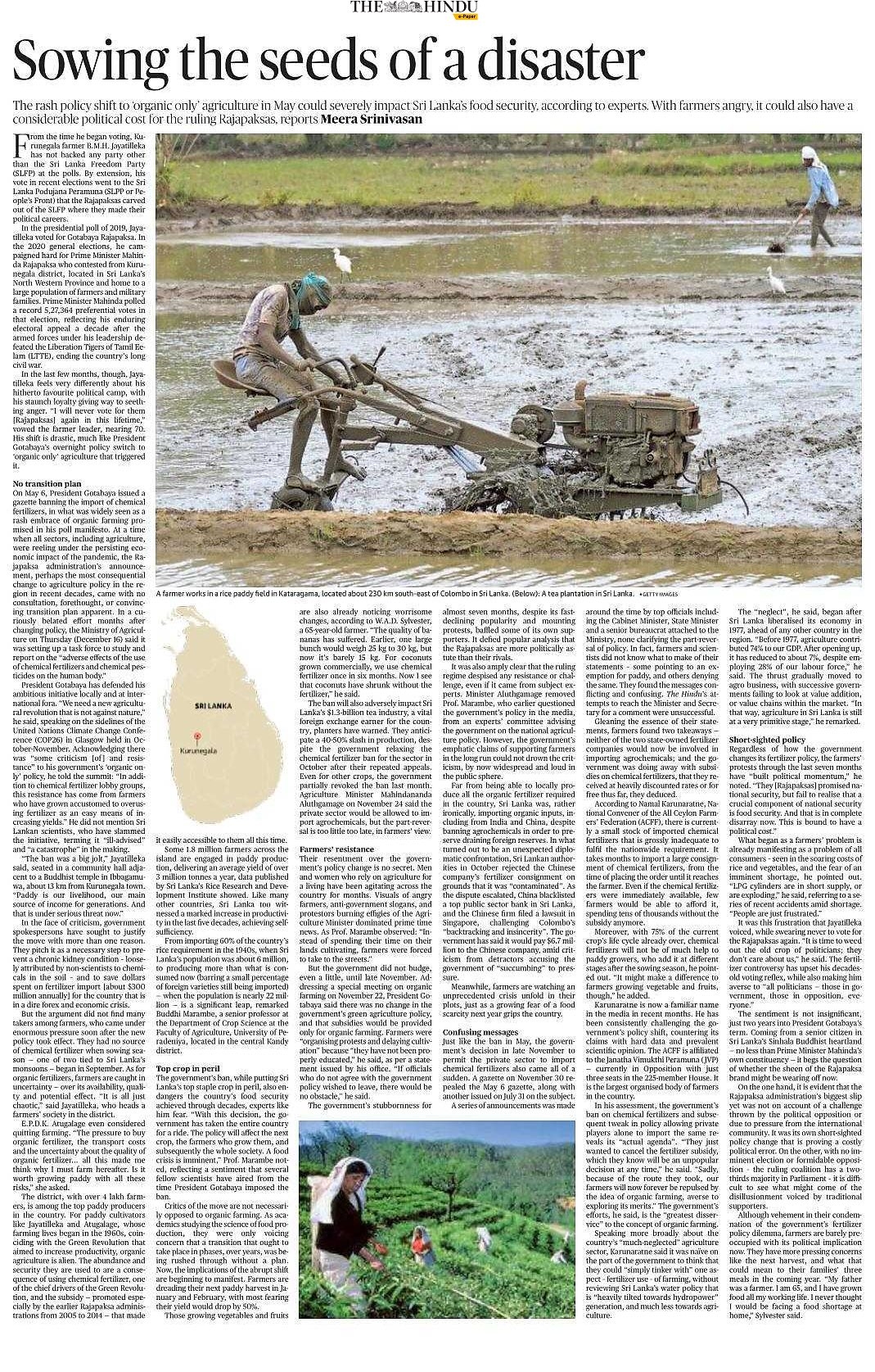 (2023) האם מדיניות החקלאות האורגנית היא הגורם למשבר הכלכלי בסרי לנקה? מהי האמת? מקור: விகடன் | גיבוי PDF